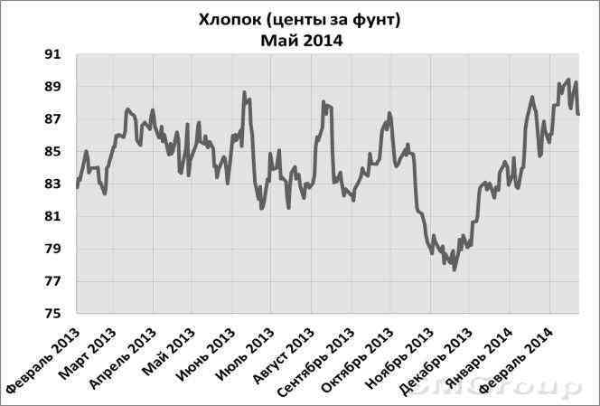 Последние 2 недели (10.02.2014-25.02.2014) рынок хлопка торгуется разнонаправлено в диапазоне от 86 до 89 центов за фунт. Тому виной противоречия, сложившиеся на рынке – это и «туманная» политика Китая, и никак не исчерпывающиеся запасы североамериканского хлопка, и увеличение посевных площадей в США в новом сезоне. Теперь обо всем по порядку.