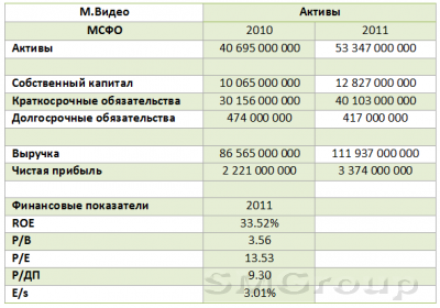 Чистая прибыль М.Видео по итогам года составила 3,3 млрд. руб. Таким образом, рентабельность собственных активов составила 33,52% годовых. Это достаточно высокий показатель для столь крупной компании, занимающей лидирующие место на рынке оптовой