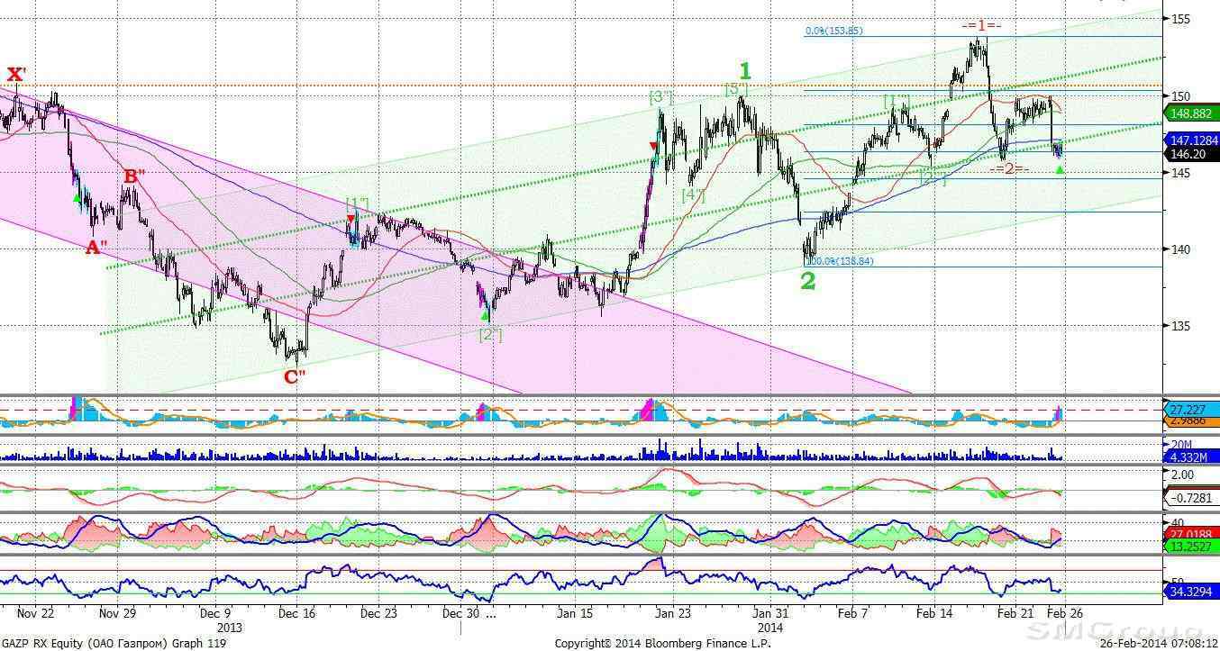 Газпром – двинулся вниз. MACD выглядит нейтрально. ADX указывает на наличие слабого нисходящего локального тренда. Осциллятор RSI побывал в зоне перепроданности, сигнал вверх. Индикатор, основанный на динамике ADX, 25 февраля дал сигнал к повышению.