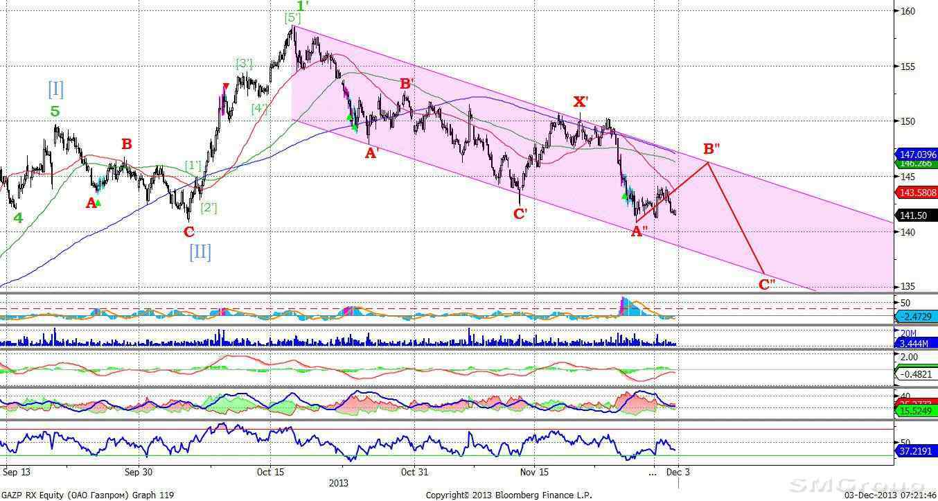 Газпром – двинулся вверх в рамках нисходящего канала. MACD выглядит нейтрально. ADX указывает на прекращение нисходящего локального тренда. Осциллятор RSI побывал в зоне перепроданности, сигнал вверх. Индикатор, основанный на динамике ADX, 26 ноября сформировал сигнал к росту. Поддержка: 141,20. Сопротивление: 147,50. Рекомендация: Покупать.