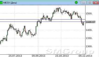 Индекс ММВБ – находится в средней части восходящего канала. MACD сформировал сигнал вверх. ADX указывает на зарождение восходящего тренда, DMI+ находится выше DMI-, ADX в средней части шкалы и направлен горизонтально. Осциллятор RSI
