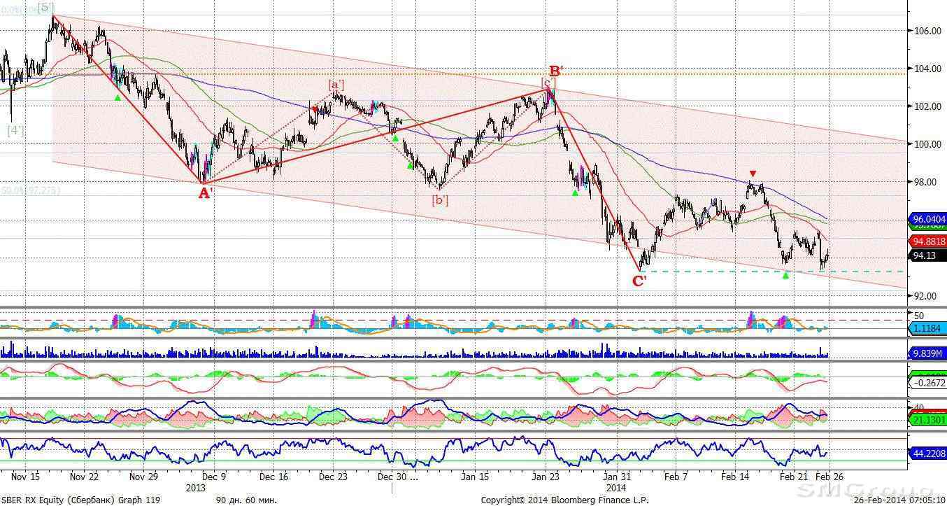Сбербанк – корректирует начатый рост. MACD сформировал сигнал вниз. ADX указывает на прекращение восходящего и начало развития нисходящего локального тренда. Осциллятор RSI побывал в зоне перекупленности, сигнал вниз. Индикатор, основанный на динамике ADX, в настоящее время выглядит нейтрально.