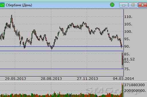 Сбербанк. Цены пробили предыдущий минимум, которым выступала поддержка на отметке 75 рублей. Данный уровень теперь будет использоваться для продаж в случае локального отскока вверх. С технической точки зрения есть потенциал для дальнейшего снижения. Ориентиром для покупателей может выступать зона 65-60 рублей, которая в предыдущие коррекции являлась минимумами снижения и откуда цены начинали восстанавливаться.