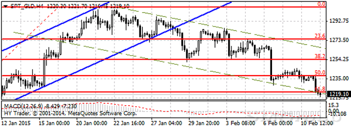 На новостях о скором возможном урегулировании кризиса на Украине золото провалилось сразу на 2 с лишним процента, достигнув отметки 1233 доллара США за тройскую унцию. Инвесторы начали выходить из защитных активов и фиксировать прибыль, накопленную