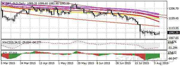 Цены на золото восстанавливаются на фоне коррекции доллара после публикации накануне слабых данных из США, заставивших ряд инвесторов пересмотреть свои ожидания в отношении неизбежности повышения процентных ставок ФРС уже в сентябре.С технической