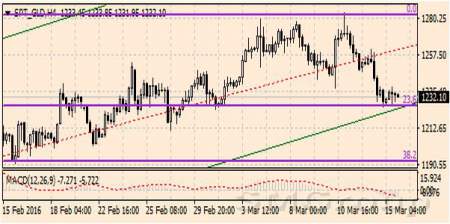 Статус кво Федерального резерва с пессимистическими ожиданиями относительно перспектив повышения ставок в этом году и пересмотры прогнозов по ВВП привели к падению доллара и стремительному удорожанию желтого металла. Золото выросло в цене из области