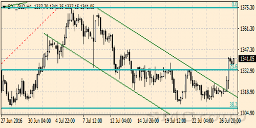 За две с половиной недели июля долларовая цена на золото снизилась на 4%. Если 6 июля максимальное значение стоимости актива составляло 1370 долл./Oz, то 25 июля цена пришла к месячному минимуму – 1315 долл./Oz. Золото, не смотря на сомнения рынка