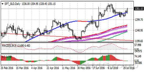 Рост доллара и восстановление фондовых индексов в преддверии публикации данных по рынку труда США оказывают давление на цену золота.По оценкам экспертов в июле ожидается рост payrolls на 190,000. Слабые майские данные (38,000), возобновили опасения