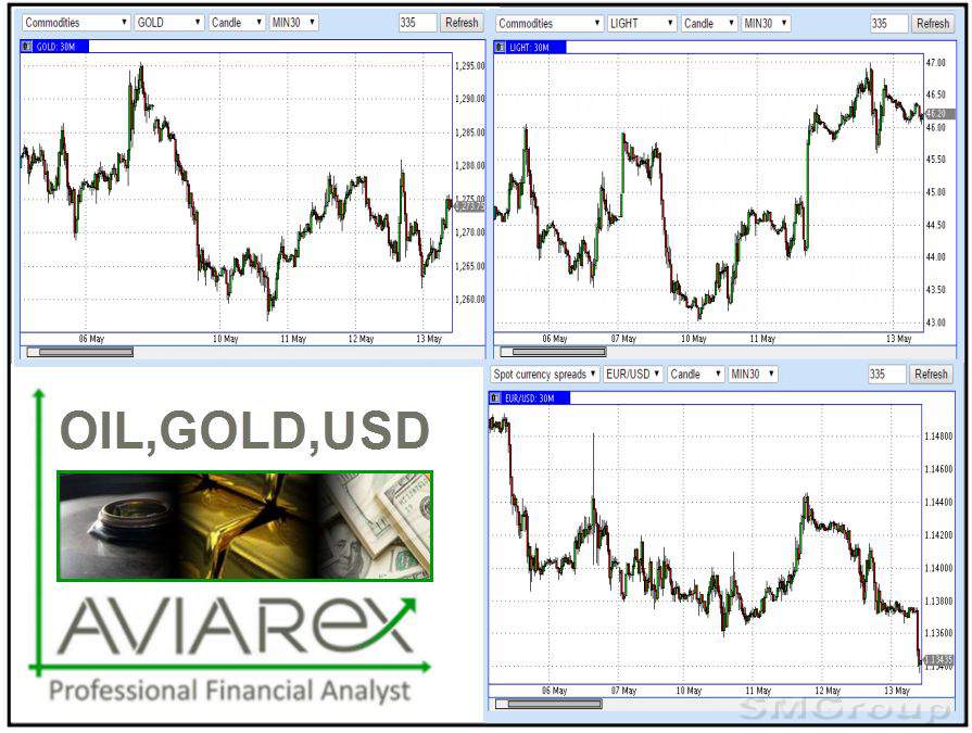 Новостной фон. Нефть, золото, доллар США Котировки на июньские фьючерсы на нефть марки WTI на NYMEX показали рост на 1% до значения $46,70 за баррель (основное движение вверх наблюдалось во второй половине торгов). Цены на золото с поставкой в июне на COMEX понизились на 0,3% до уровня $1271,20 за тройскую унцию. Доллар США окреп против евро и йены, а по отношению к фунту почти не изменился.