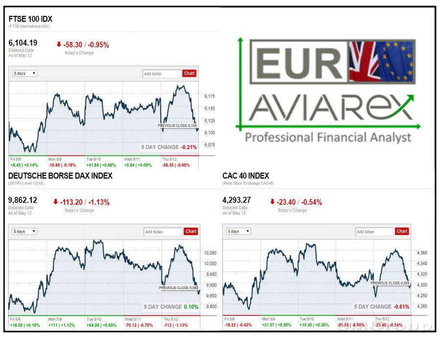 Credit Agricole (французский кредитор) – ценные бумаги снизились на 4,9% после того, как компани отчиталась о 71%-ном падении прибыли в первом квартале.