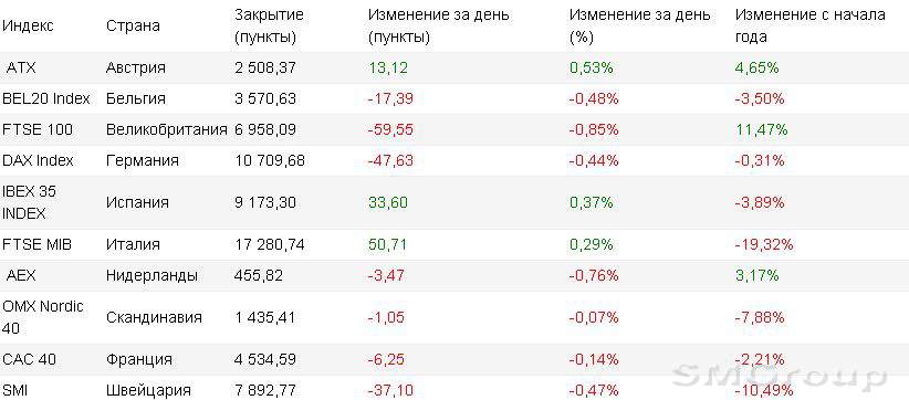 В среду, 26 октября, ключевые фондовые индексы Европы продемонстрировали отрицательную динамику вот уже третий день кряду на фоне публикации разочаровывающих корпоративных отчетностей ряда компаний.В среду, 26 октября, фондовый рынок Соединенных Штатов завершил торговую сессию разнонаправленным изменением основных индексов. Резкая просадка акций Apple после выхода квартальной отчетности окрасила в красный цвет котировки высокотехнологичного