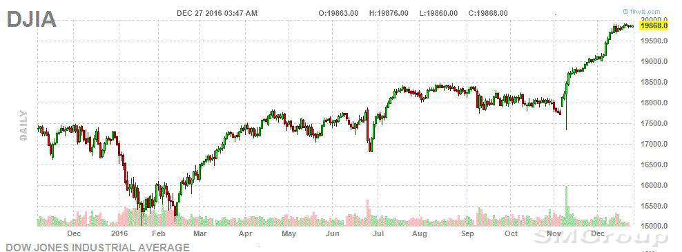 Фондовые индексы США активно повышались после президентских выборов в США, устанавливая все новые и новые максимумы, так как инвесторы делают ставку на снижение размера налогов и повышение бюджетных расходов при новой администрации Дональда Трампа. Вместе с тем,
