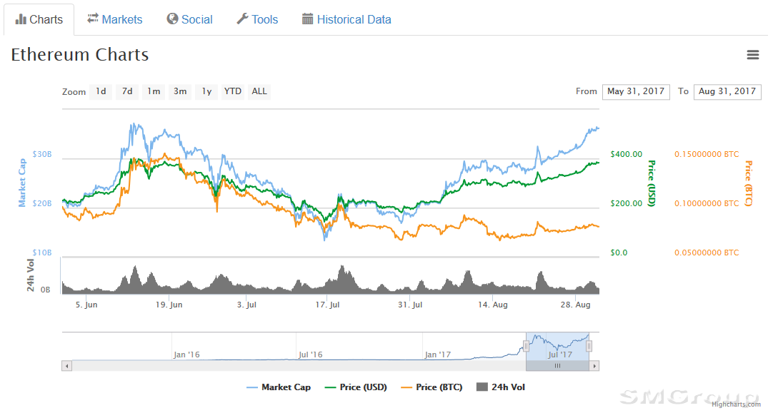 Главная|Фондовый рынок США и Европы|Эфир превзошел биткоин за летний период по росту ключевых показателей