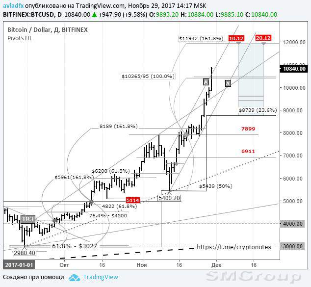 В среду, 29 ноября, в ходе азиатских торгов на бирже Bitfinex курс биткоина пробил психологический уровень $10 тыс. На повышенных объемах он подорожал к американскому доллару на 9,6%, до $10884 в течение 4,5 часов. Это знаменательное событие для криптоиндустрии. Инвесторы ждали его несколько месяцев. Во вторник, 28 ноября, ключевые фондовые индексы Соединенных Штатов Америки завершили торги на положительной территории на фоне воодушевляющей статистики, обновленных прогнозов ОЭСР, а также известиям о том, что налоговый законопроект прошел
