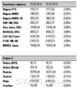 Индекс широкого рынка Америки S&P накануне протестировал историческую отметку в 2000 пунктов и в моменте даже рос до 2008 пунктов. Очевидно, это связано с продолжающейся эйфорией среди инвесторов после заявлений ФРС о возможном начале повышения ставок лишь в середине 2015 года. Тем не менее, такой резкий рост рынков может вызвать подозрения регулятора и вполне возможно, что период нулевых ставок может закончиться уже в начале следующего года. По итогам основной торговой сессии понедельника ММВБ закрылся на уровне 1 392,40 пункта, снизившись на 0,59%. Объем торгов по бумагам из базы расчета индекса за день составил 34,5 млрд руб. Российский фондовый рынок встретил осень с минорным