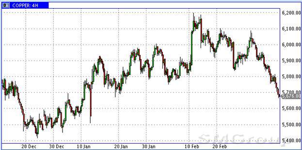 Помимо нефтяного прогноза, мы отмечали: “Золото, прочие драгоценные и цветные металлы продолжают нисходящий тренд, сформировавшийся на прошедшей неделе. Я полагаю, он продолжится по мере укрепления индекса доллара и новых свидетельств торможения китайского экономического локомотива. По золоту, я вижу ближайшую цель снижения в диапазоне $1,205-10 за тройскую унцию. По меди - $5,700 за тонну”. По золоту и меди рынки за два прошедших дня успешно реализовали прогноз и отметились на обозначенных уровнях. Сегодня мы наблюдаем продавливание вниз ценовых ориентиров по золоту и меди. Следующими целями по золоту выступает уровень в $1,170 за тройскую унцию и $5,500 за тонну меди (см. график 2). За резким пике в котировках меди, почти гарантированно следует столь же крутой обвал фондовых индексов. Сейчас вполне уместно открыть короткие позиции против индекса S&P500 или Russell2000 через ETF-ы с тройным плечом SPXU и TZA.