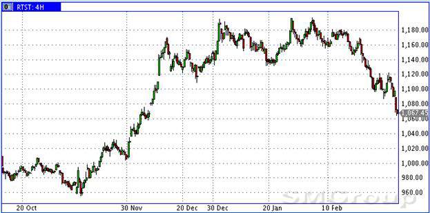 На фоне таяния нефтяных котировок скверно чувствует себя индекс РТС. Сегодня с утра РТС теряет около 3% своей стоимости и до обозначенной цели движения на уровне 1020 пунктов ему предстоит похудеть ещё примерно на 4% (см. график 3).