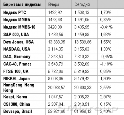 Мы ожидаемПозитивный сигнал, полученный рынком на прошедшей сессии, будет иметь достаточно длительный эффект. Желающих присоединиться к ралли, набирающему ход, будет много.Рынок наканунеФондовые индексы выросли больше чем на 1 процент в четверг