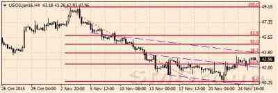 В понедельник цены на нефть продолжили снижаться. На текущий момент нефть марки Brent (январские контракты) торгуется на уровне $44,6 за баррель, цена WTI с поставкой в январе не превышает $41,5 за баррель. По итогам прошлой недели стоимость Brent (январские контракты) составила $44,83 за баррель, WTI с поставкой в январе завершила торги на уровне $41,71 за баррель.Цены на нефть основных эталонных сортов снижаются в понедельник утром 30 ноября по мере того как участники рынка ожидают встречи ОПЕК, а также продолжения усиления доллара.По данным терминала Libertex, фьючерсные контракты на европейскую нефть марки