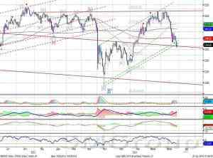 Индекс ММВБ – приблизился к нижней границе восходящего канала. MACD отрабатывает сигнал вниз. ADX указывает на наличие нисходящего тренда, DMI+ ниже DMI-, ADX в средней части шкалы и направлен вверх. Осциллятор RSI побывал в зоне