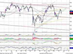 Индекс ММВБ – увеличил темпы снижения. MACD выглядит нейтрально. DMI+ находится ниже DMI-, ADX в верхней части шкалы и направлен чуть вниз, что указывает на небольшое замедление нисходящего локального тренда. Осциллятор RSI побывал в зоне перепроданности, сигнал вверх. Индикатор, основанный на динамике ADX, 28 августа дал сигнал к росту.