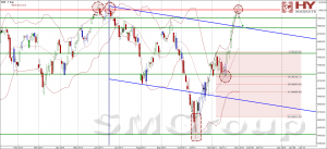 Индекс ММВБ – преодолел один из сильных уровней сопротивления. MACD выглядит нейтрально. ADX указывает на наличие восходящего тренда, DMI+ выше DMI-, ADX в средней части шкалы и направлен горизонтально. Осциллятор RSI побывал в области