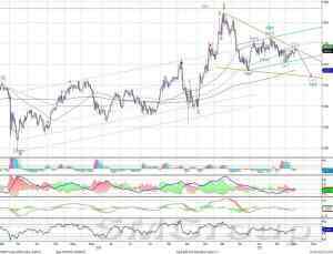 Индекс ММВБ – остается в нижней части умеренно восходящего канала. MACD сформировал сигнал вверх. DMI+ и DMI- сошлись, ADX в нижней части шкалы и направлен горизонтально, что говорит об отсутствии тренда. Осциллятор RSI в средней части шкалы, сигналов нет. Индикатор, основанный на динамике ADX, в настоящее время выглядит нейтрально.