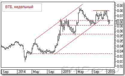 Во второй половине 2014 г. наметилась под-держка на 0.038 р. Отскоком в ноябре сходу прошли сильное сопротивление 0.050 р. и дошил до 0.070 р. Затем бумага скорректиро-валась до 0,055 р. В мае 2015 г. идет мощный прорыв сопротивления, и цена доходит