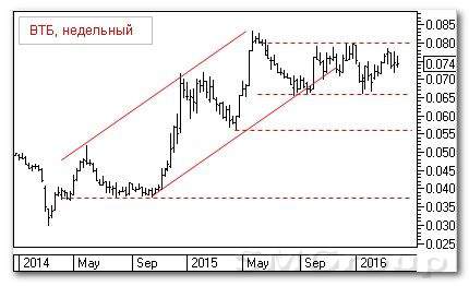 Во второй половине 2014 г. наметилась поддержка на 0.038 р. Отскоком в ноябре сходу прошли сильное сопротивление 0.050 р. и дошил до 0.070 р. Затем бумага скорректировалась до 0,055 р. В мае 2015 г. идет мощный прорыв сопротивления, и цена доходит
