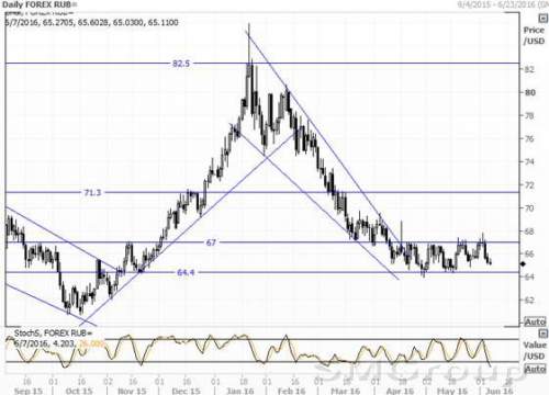 Торговые идеиИдея для длинной позиции: После снижения от 95 р. в начале третьей декады апреля, бумага нашла поддержку на 83 р. Отскоки от этого уровня сформировали локальное сопротивление на уровне 87 р. Таким образом, получился боковой канал. Июнь открывается повышенной волатильностью. Почти от верхней границы канала начинается снижение, и со второй попытки медведи пробивают канал. Еще один импульс вниз на торгах в пятницу приводит цену к 79 р. Ниже уже продавцы пройти не могут. Вчерашние торги открываются с разрывом вверх, но его быстро заполняют. Несмотря на это, быки хорошо держат уровень 80,5 р. до конца дня. Образуется внутридневная консолидация, так называемая «площадка» (вымпел). Такая модель встречается довольно часто. При ее раскрытии вверх велика вероятность продолжения роста. Но нужно внимательно следить за сохранением прибыльности позиции (в случае возникновения таковой). Мы не рекомендуем открывать позицию с начала торгов.