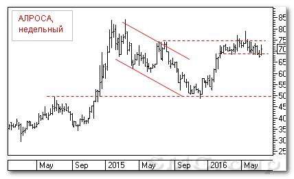 Долгосрочно: снижение Рост от начала 2014 г. обновил исторический максимум на 550 р. В первой половине 2015 г. состоялась коррекция. Она чуть более 61% от роста. С июля начался отскок от 250 р. Но преодолеть 300 р. быки не смогли. За два бара медведи скорректировали цену к 250 р. Отскок не получился и снижение продолжилось. На вялом движении прошли 250 р. Бумага перешла в боковик с поддержкой на 220 р. Быки сделали плавный отскок и прокололи 250 р. Закрепиться не удалось, и снижение продолжилось. Несмотря на пробой 200 р., быки смогли его выкупить, но нужно пробивать годовой тренд и выходить к 250 р.