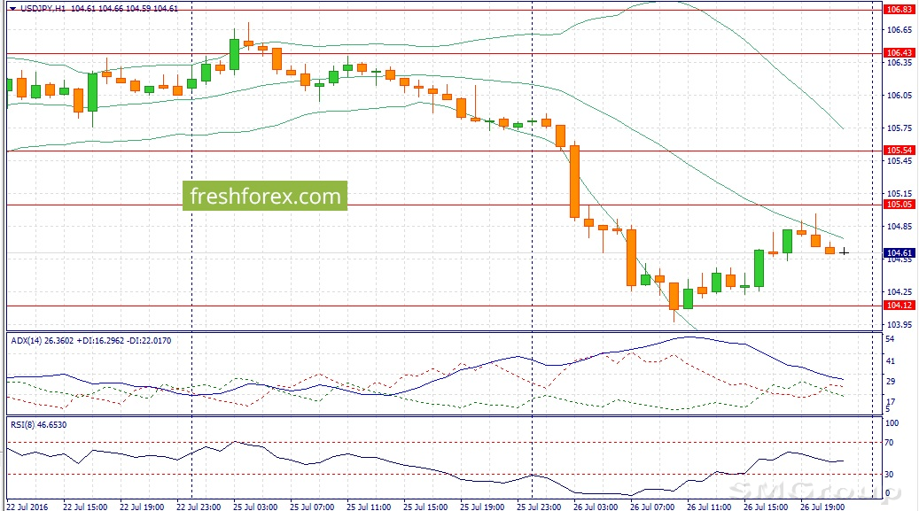 К примеру, продажи новостроек в июне выросли на 25,4% г/г, а это сильный индикатор деловой активности в Штатах. FED может заявить о том, что повышение ставок в 2016 году может состояться, несмотря на Brexit, и этого будет достаточно, чтобы увидеть спрос на доллары. Почему? Потому что другие ведущие мировые центробанки задумываются о смягчении кредитно-денежной политики в текущем году из-за низких инфляционных ожиданий и все того же Brexit. На этом фоне, в течение дня следует открывать позиции Sell на росте