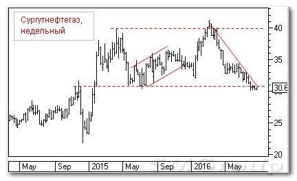 Технический анализНа недельном графике всё достаточно очевидно, и, как говорилось в одном известном фильме - “всё нормально - падаем”. Котировки, практически без отскоков вверх, снижаются уже на протяжении пяти месяцев, и для остановки снижения на данный момент нет веских причин.Пробитый ранее ключевой уровень поддержки, в районе отметки 34р., открыл прямой путь для движения акций к отметкам 20-23р. Конечно, движение вниз не будет молниеносным, поэтому, пока на рынке присутствует некоторый спад волатильности, используем этот момент для определения важных уровней, на которых нами будут открыты новые короткие позиции.