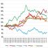 5. РТС/Брент: соотношение составляет 21.70, оставаясь ниже уровней скользящей средней ЕМА-55 на недельном графике и ЕМА-400 на дневном. В такой ситуации мы продолжаем считать, что ситуация может развиваться по сценарию 1998 и 2008 годах, когда было длительное снижение соотношения.