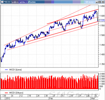 Так, текущий максимум для индекса РТС составляет 1755,64 пункта (5 марта 2012 года). Уровень весьма интересен с позиции ретроспективного анализа. 23 мая 2011 года был зафиксирован локальный минимум по индексу РТС на уровне 1760,36 пунктов. Данный локальный минимум продержался до 8 августа 2011 года и был пробит после понижений рейтинговым агентством Standard & Poor's в пятницу, 5 августа, кредитного рейтинга США с отметки AAA до AA+. Однако американские индексы в 2012 году вышли на свои новые максимумы, а индекс РТС пока остается ниже весенне-летних минимумов 2011 года. Уже 12 сессий подряд
