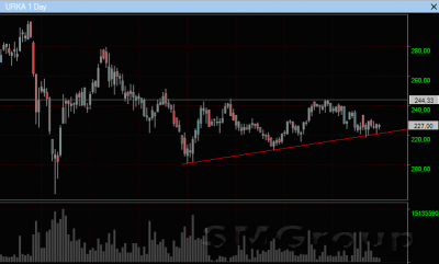 Как видно, цены уже несколько торговых сессий тестируют диагональную поддержку, которой выступает нижняя граница треугольной формации. Коррекция широкого рынка не повлияла на настроения покупателей, которые упорно удерживают описанный уровень
