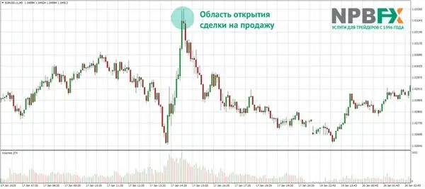 Пример: на графике валютной пары EUR/USD за 15 минут цена может совершить резкий скачок, за которым почти мгновенно следует откат. Этот процесс идеально иллюстрирует суть стратегии ловли "ножей".