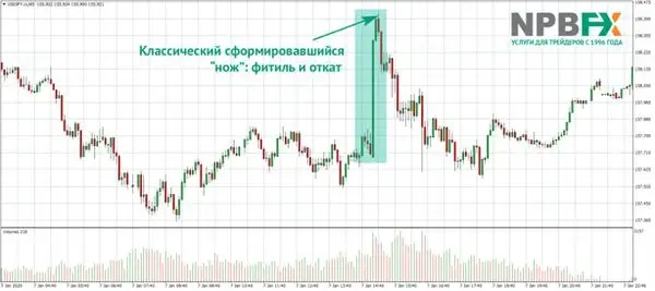 Что такое "нож" в трейдинге"Нож" – это резкое импульсное движение цены за короткий промежуток времени. Амплитуда движения может варьироваться в зависимости от финансового инструмента, таймфрейма и рыночной ситуации. На рынке Форекс такие движения встречаются, например, на валютных парах с высокой волатильностью, во время выхода новостей или в периоды низкой ликвидности.